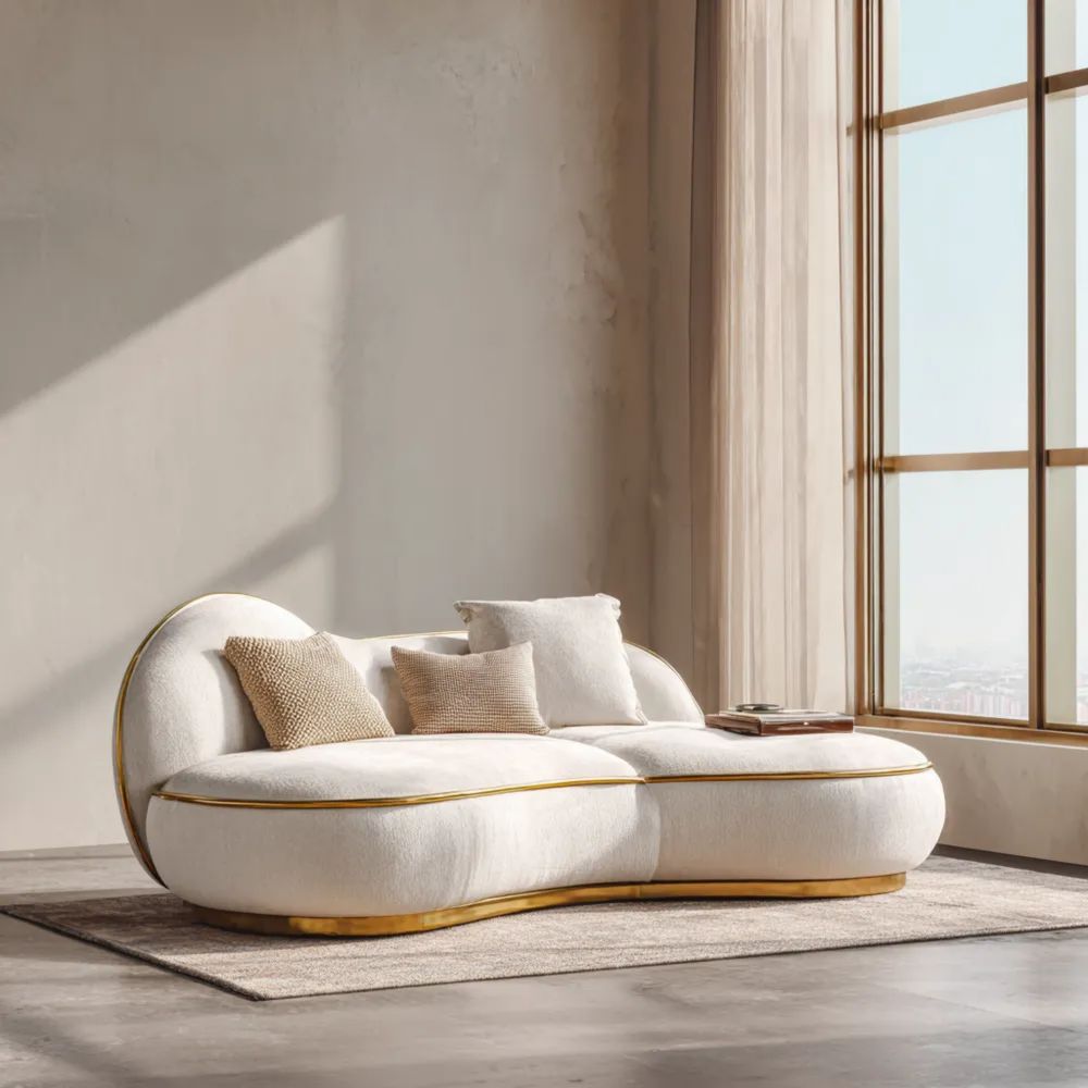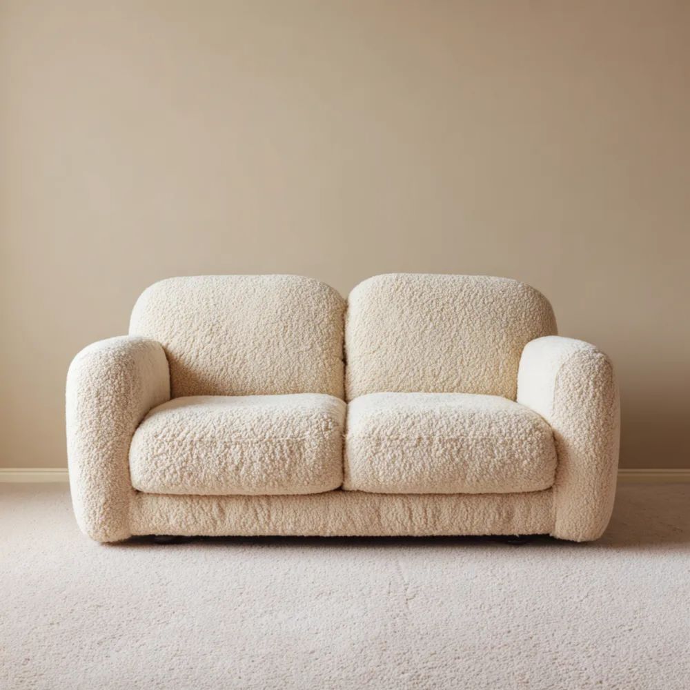 Divano a due posti in tessuto bouclé 150x85x75 cm - Crema - Design moderno