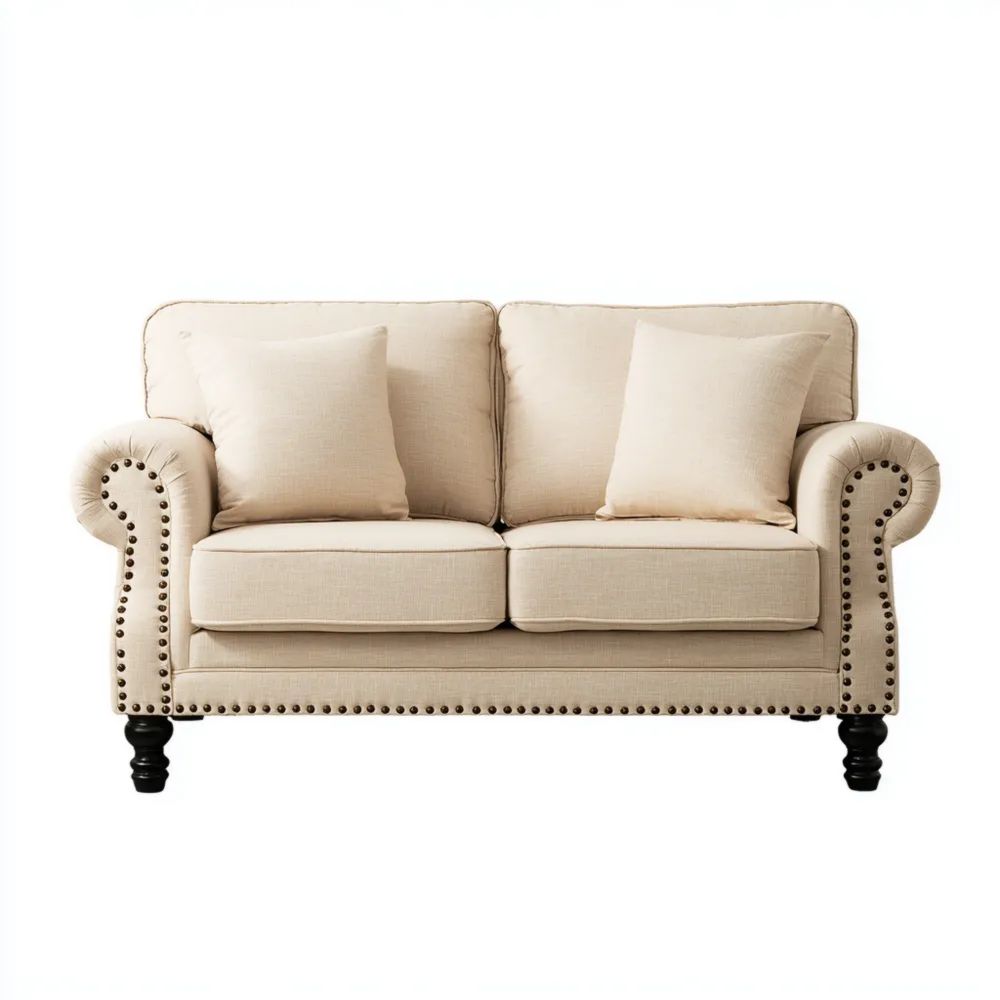 Divano a due posti 140x85x90 cm - Beige - Design Classico