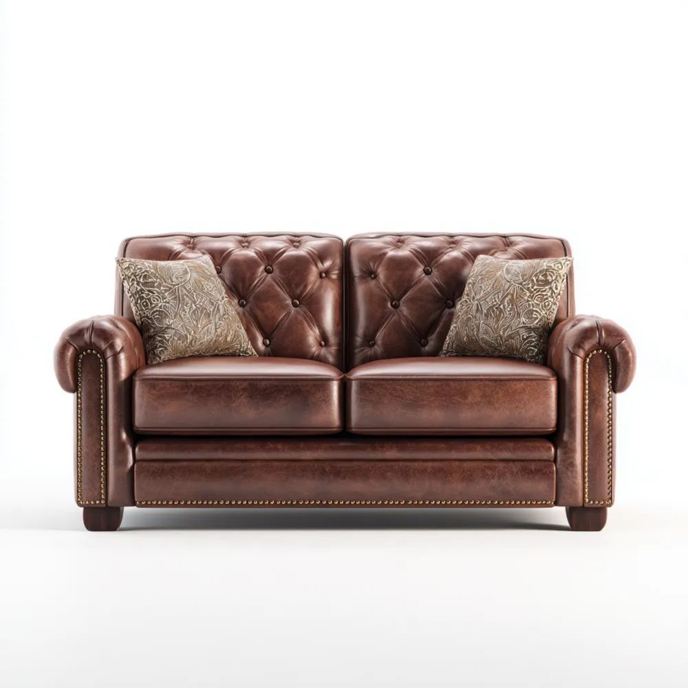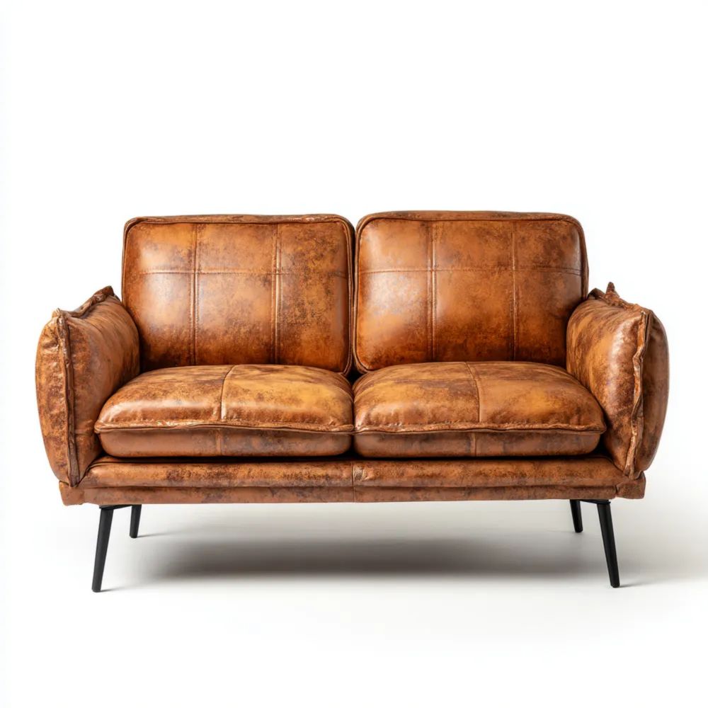 Divano a due posti 140x85x80 cm - Pelle sintetica Marrone - Design retrò